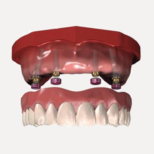 Pour les patients édentés total, lorsque les cas de résorption osseuse sont sévères, la prothèse amovible a tendance à se déloger. Ainsi pour augmenter la rétention et stabilité de la prothèse, la prothèse amovible peut se clipser sur la tête des implants, appelés locator.